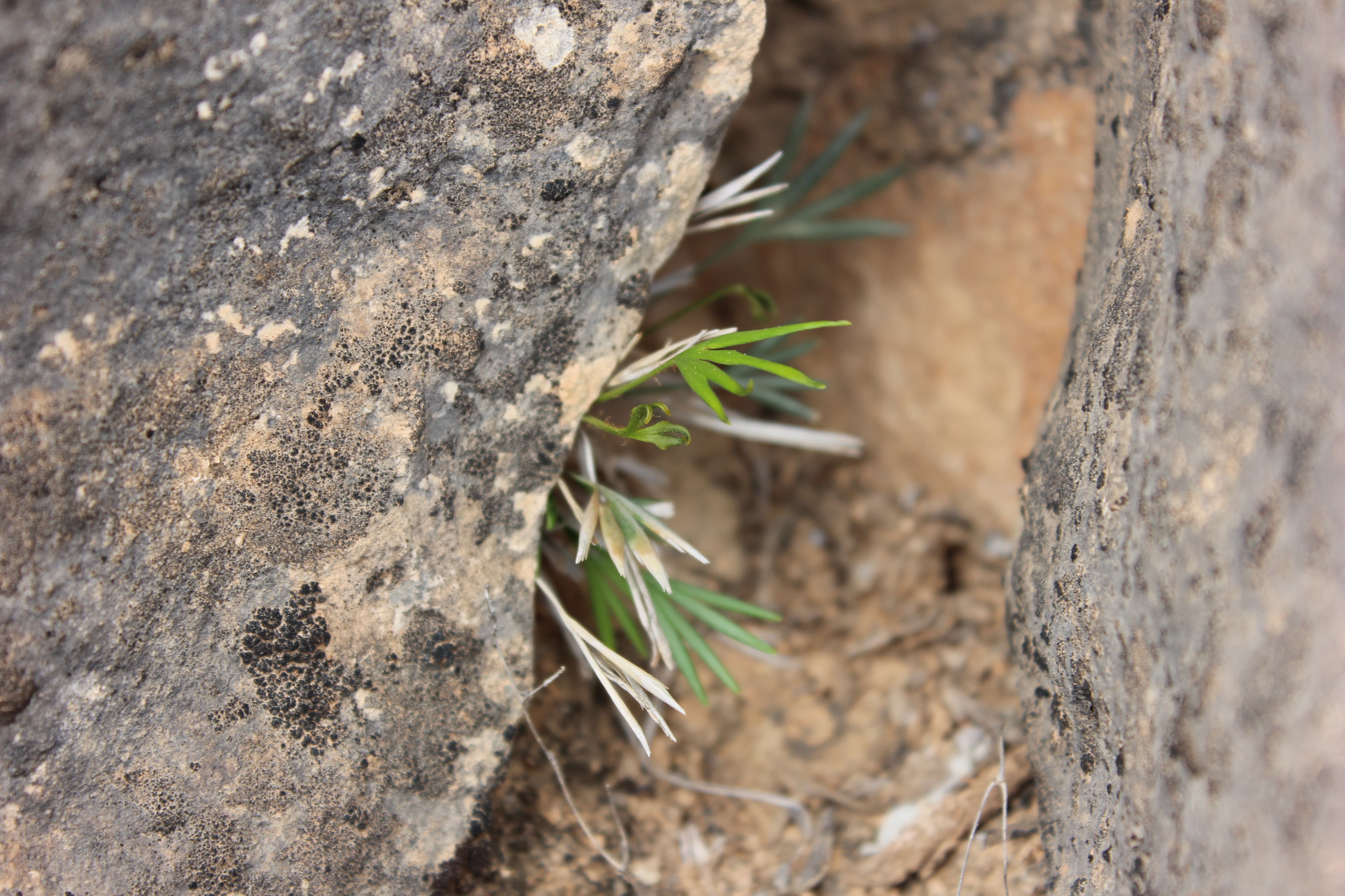 Small perennial fern with fan-shaped fronds ; up to 25 cm with light brown and wholly membranous or dark central stripe and light membranous margins rhizome-scales . Fronds (3-)5-30 cm long , wedge-shaped , twisted sideways , not sharply declinate when desiccated , deeply dissected into 4 to 18 linear segments ; segments ± acute and laterally toothed at the apex . Spore sacs (sori) borne at the edge of the lower frond surface , covered by the folded back margin of the leaves . (Ref . Miller & Cope ; 1996) .