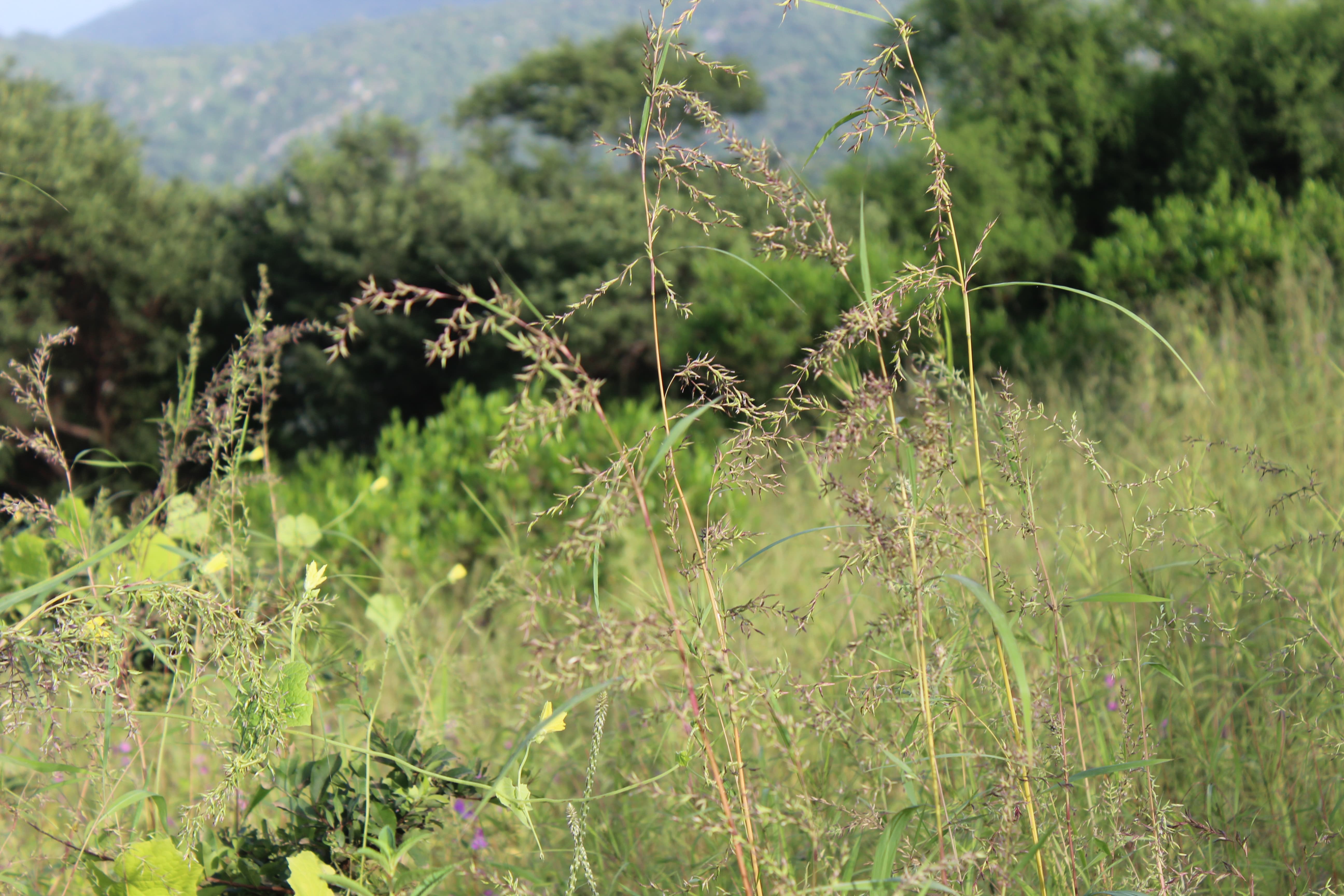 Rambling , short-lived perennial (often appearing annual) ; culms rooting at the lower nodes , up to 3 m long ; ligule membranous . False panicle linear , interrupted 3-40 cm long , spatheole narrowly ovate in profile , acuminate . Sessile spikelet llaterally compressed . Pedicelled spikelets awnless , broadly lanceolate .