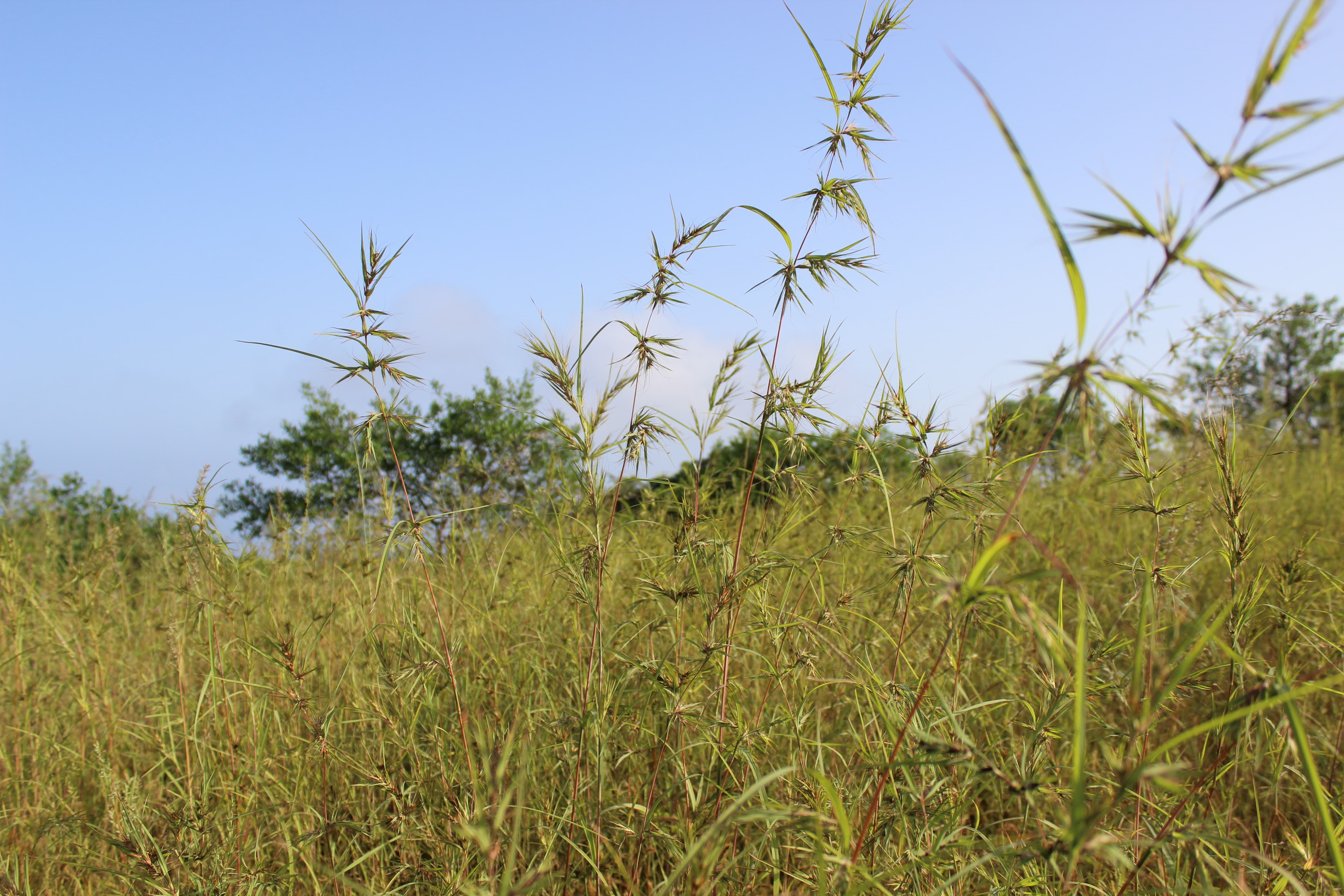 Annual up to 2 m high ; culms slender to stout and often supported below by stilt-roots . Ligule very short , membranous . False panicle up to 55 cm long ; spatheole 1 . 5-2 . 5 cm long , glabrous . Raceme with 1 fertile spikelet . Sessile spikelet 5-6 mm long , including the blunt , rufously bearded , 0 . 5-1 mm callus . Pedicelled spikelet 5 . 5-7 mm long , glabrous .