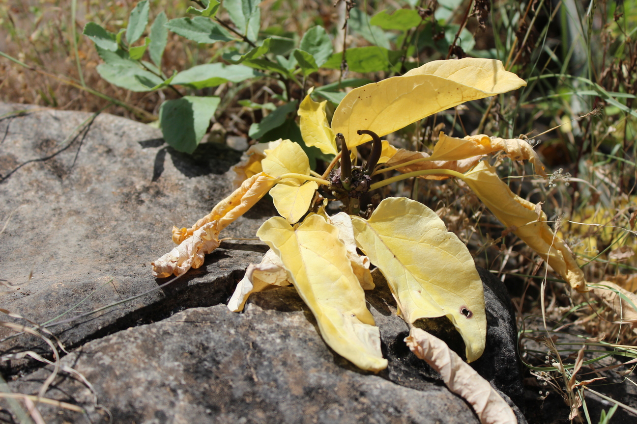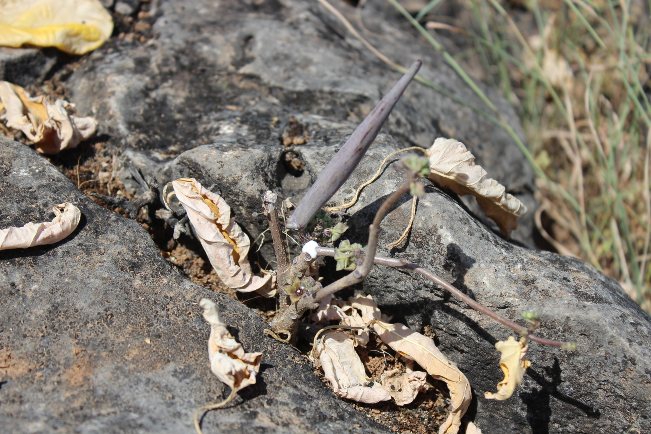 In Omani studies: Miller & Morris (1988) wrote that: "Cibirhiza dhofarensis is mainly to be found in the rocky and stony areas of Dhofar, extending from the coast up into the monsoon mountains. Sometimes the tuber is quite inaccessible, so deeply down under the rocks does it grow, and then only the leaves can be gathered. Bunches of the vivid green leaves can frequently be seen after rain growing luxuriantly from holes and cracks in huge slabs of rock, the roots well protected deep down out of reach of even the most digigent digger. These large leaves are deliciously sweet, and were collected and eaten raw, or were cooked as a vegetable. The flowers, and later the pod-like fruits, are also edible - indeed no part of the plant was not eaten. Under suitable conditions, the tuber can grow to an impressive size, like a large sweet potato, but in