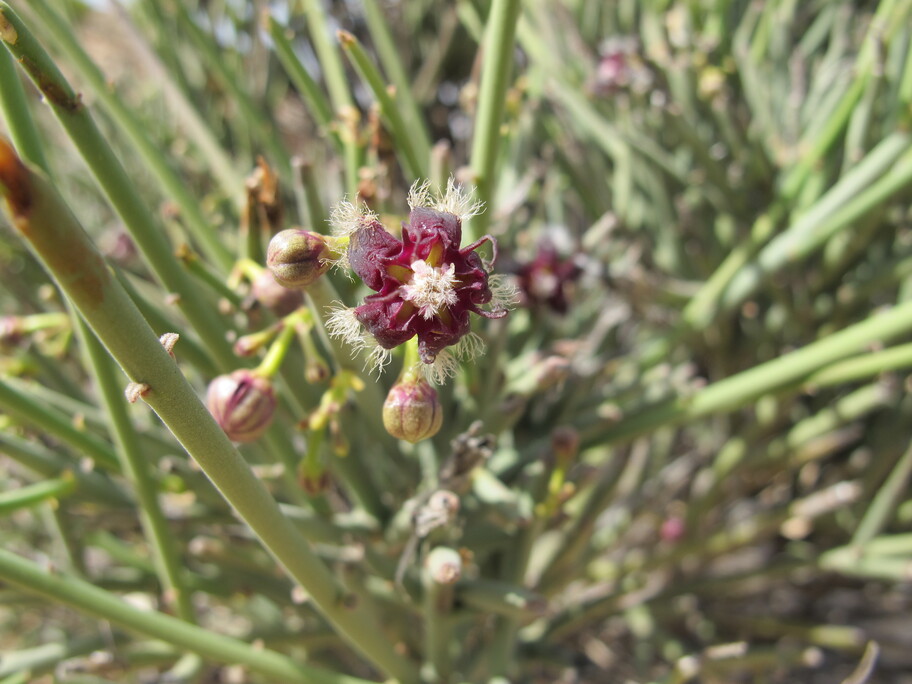 In Omani studies: Miller & Morris (1988) wrote that: "The stems and shoots of P. tomentosa and P. daemia were used to loosen the hair from hides so that it could be scraped off before the hide was tanned. P. daemia was used in much the same way as P. tomentosa in Dhofar, and the two plants are not differentiated in name". (Ref. Plants of Dhofar). In addition, Ghazanfar (2015) mentioned that: "The species has been used traditionally to loosen hair on hides for tanning. The latex, if rubbed over skin or eyes can cause inflammation and pain, and if ingested can cause stomach cramps and diarrhoea". (Ref. Flora of Oman; vol.3).