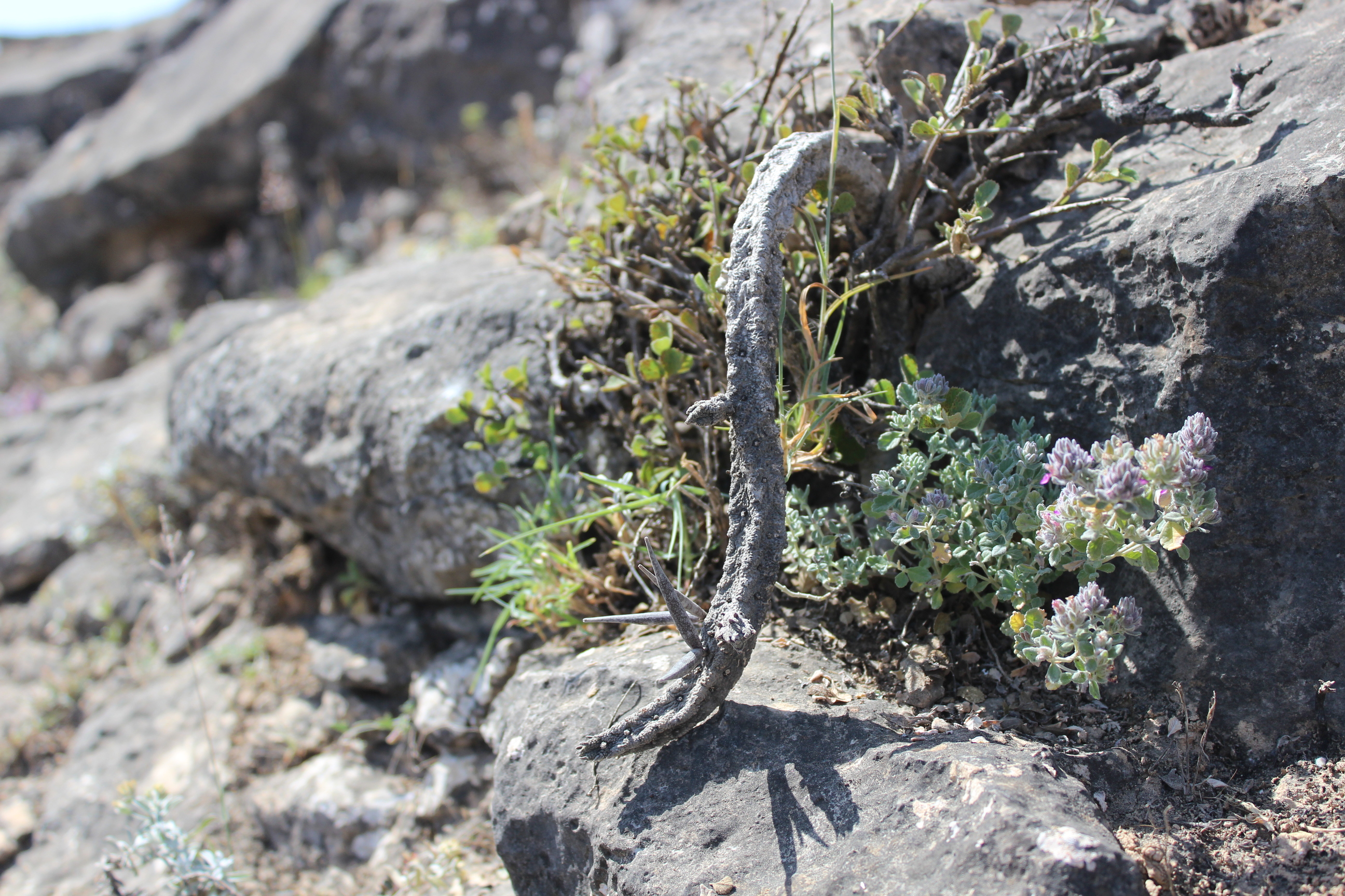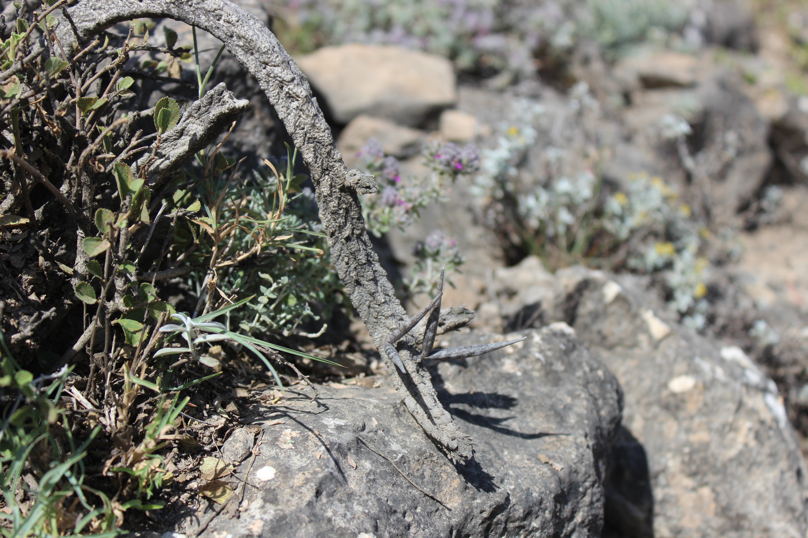 In Omani studies: Miller & Morris (1988) wrote that: "Rhytidocaulon fulleri does not apparently occur commonly enough for it to have been given a specific name. Specimens shown to local experts illicited the name deģúbsi, or duģebóš, the name for Echidnopsis planiflora (Echidnopsis scutellata subsp. dhofarensis). It is rare in Dhofar, being occasionally found in the dry areas outside the monsoon zone. The flowers and fruits as well as the stem when it is flushed green after rain, are all edible. But these plants are insufficiently common to have had any importance as nourishment". (Ref. Plants of Dhofar).