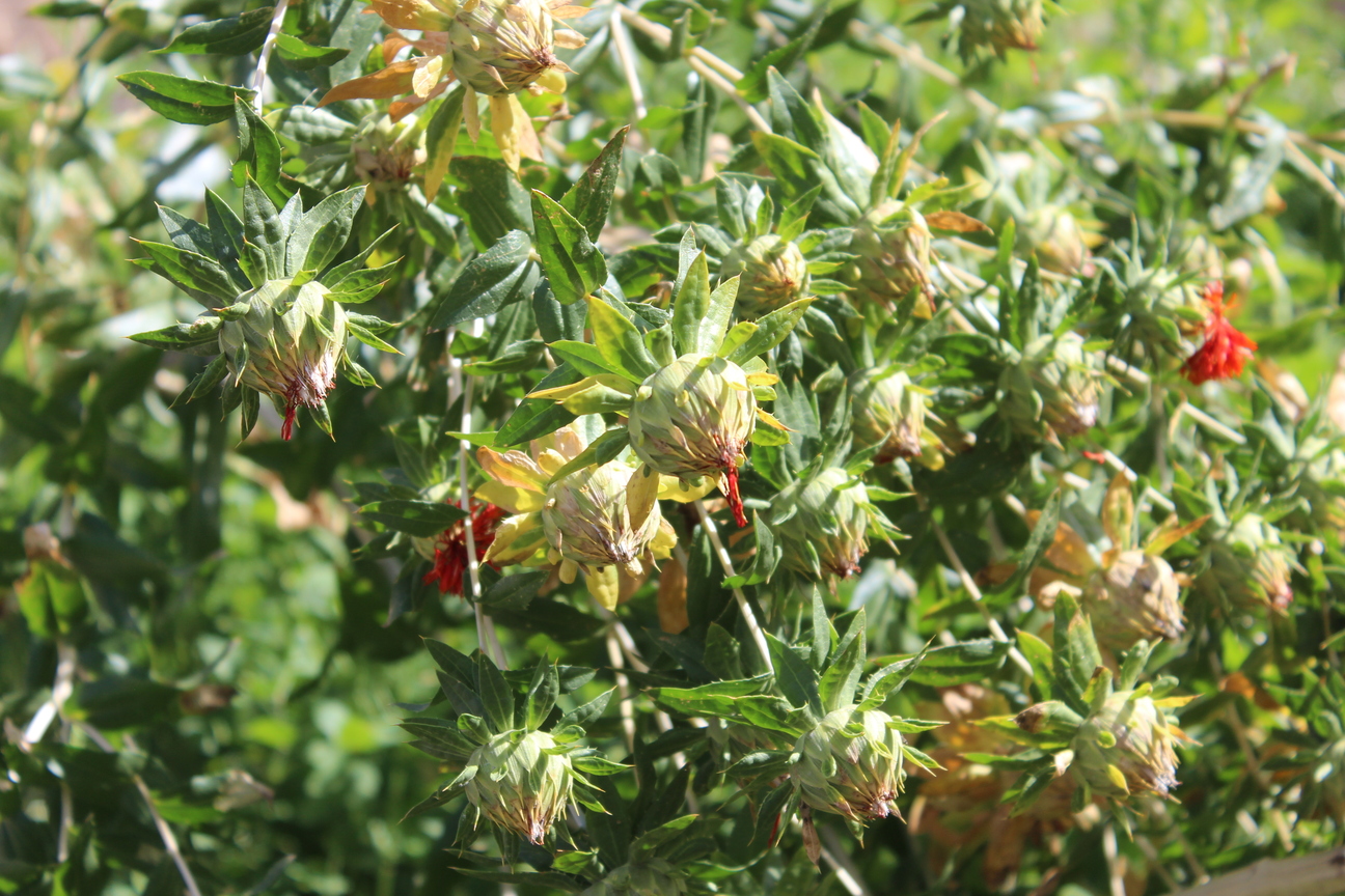 Annual her ; up to 1 m tall , with a strong taproot . Stems erect , stout and rigid , branched , glabrous , pale yellow-green . Leaves alternate , sessile , ± 4-9 x 1-3 cm , ovate to lanceolate , glossy , base cuneate to clasping , apex obtuse , with entire to spiny-serrate margin . Inflorescences solitary at the end of the branches , 1-5 heads per plant . Flowers tubular , perfect ; corolla orange to red ; stamens and pistils yellow . Fruit achenes , ± 6-8 x 3-4 mm , obliquely obovoid , weakly angular , smooth , pale . Seeds pappus , of ± 6 mm long bristles or absent . (Ref . Flora of Oman ; vol . 3) .