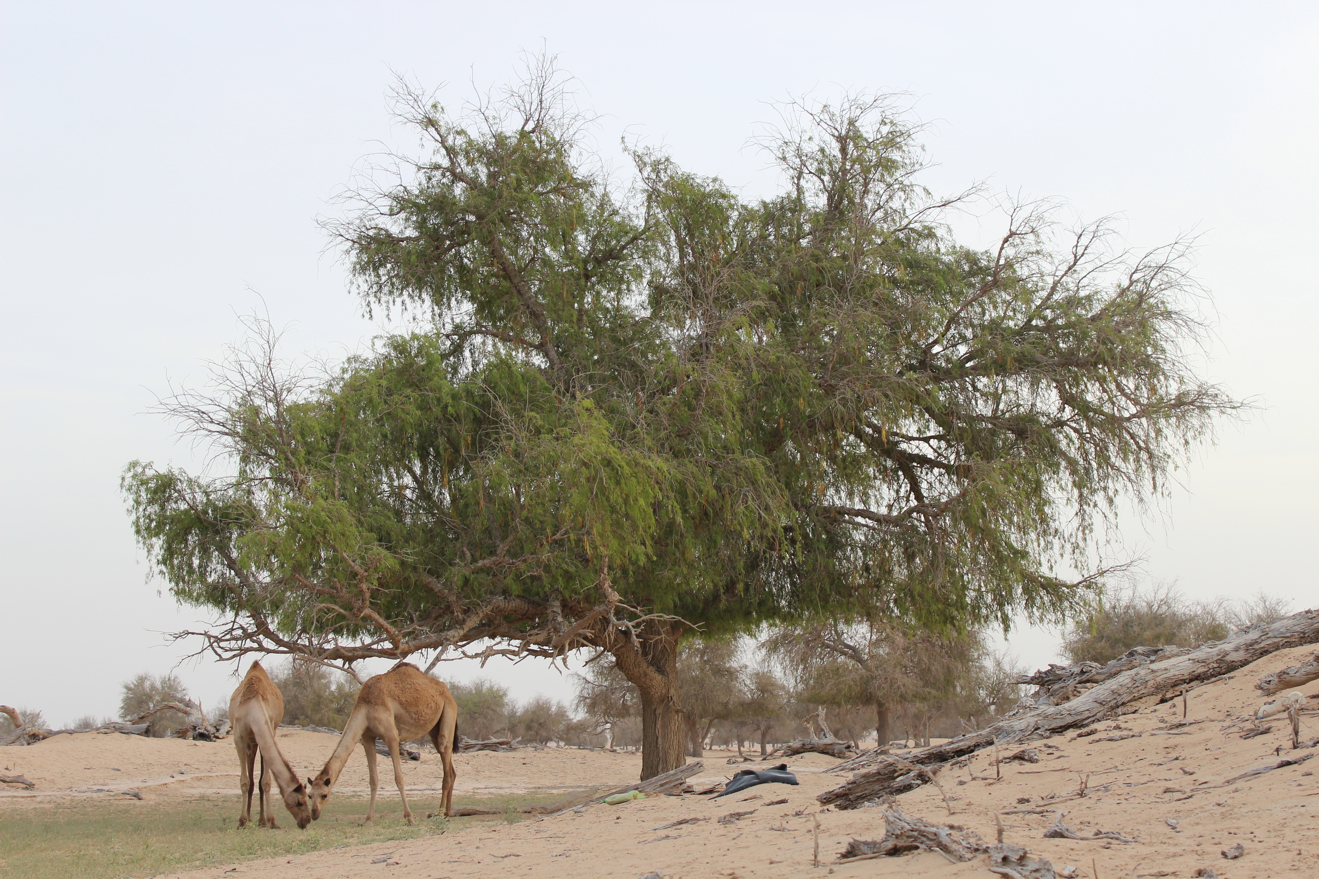 In the central desert of Oman, the pod 'hanbal' is edible. The dry outer skin of the bark collected and burnt to ash which later applied to treat scabies in camels. (Ref. Oman Botanic Garden). In Omani studies: Richardson and Dorr (2003) wrote that: "Hardwood is an important but limited material, used for small items such as camel saddles, tent posts and pegs, spindles, camel sticks and cross-bars for weaving looms. The leaves are cropped by camels, and the tree offers a precious modicum of shade for travellers. Camel-borne axe (qaddum) of hand-forged steel, with hammer head, mounted on a handle of ghaf wood is carried in the camel bag by Wahaybah tribesmen of central and northern Oman when travelling". (Ref. The Craft Heritage of Oman). In addition, Ghazanfar (2007) mentioned that: "Providing shade and browse for bedouins livestock. Extensively browsed by camels, and pods used as fodder. Leaves, bark