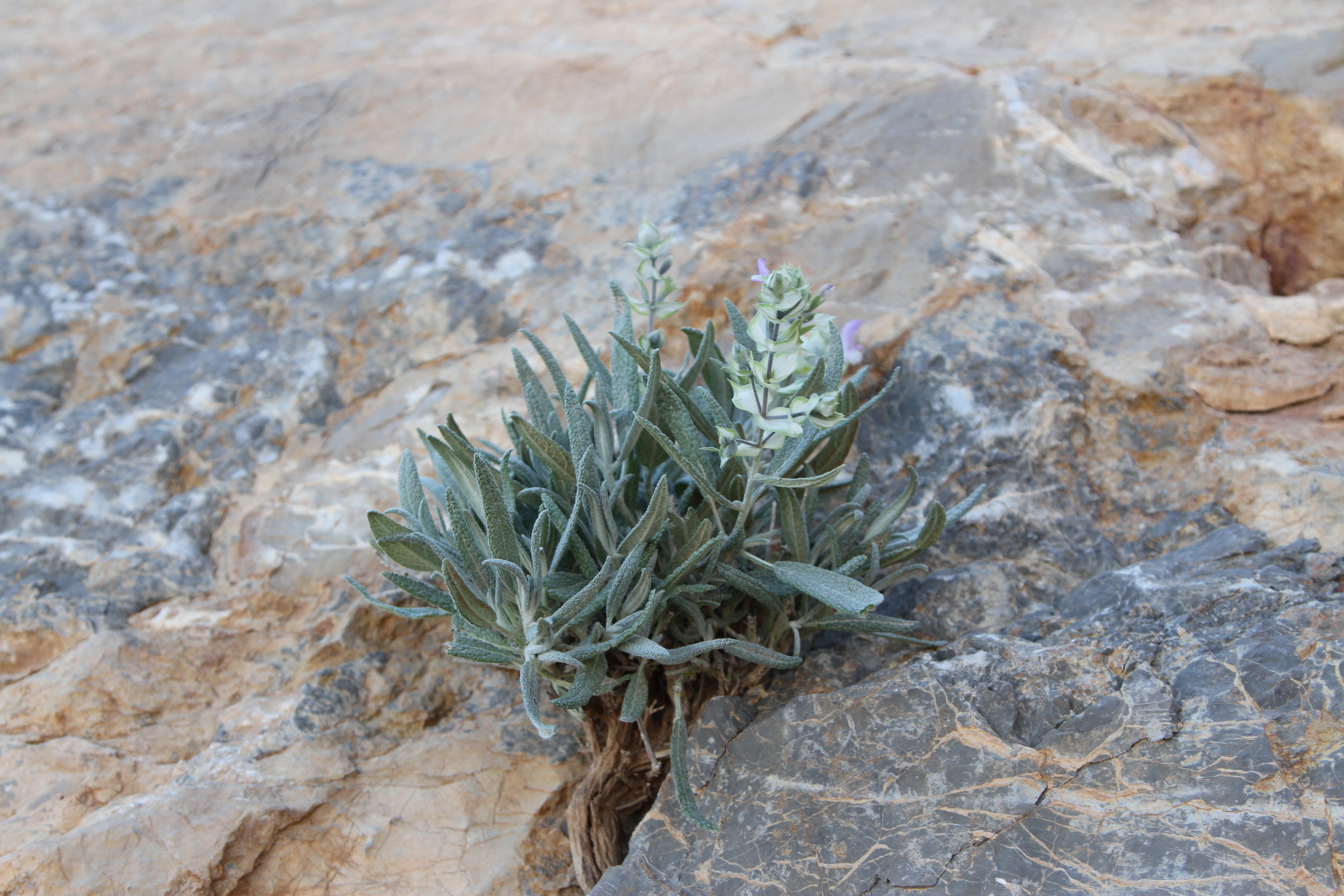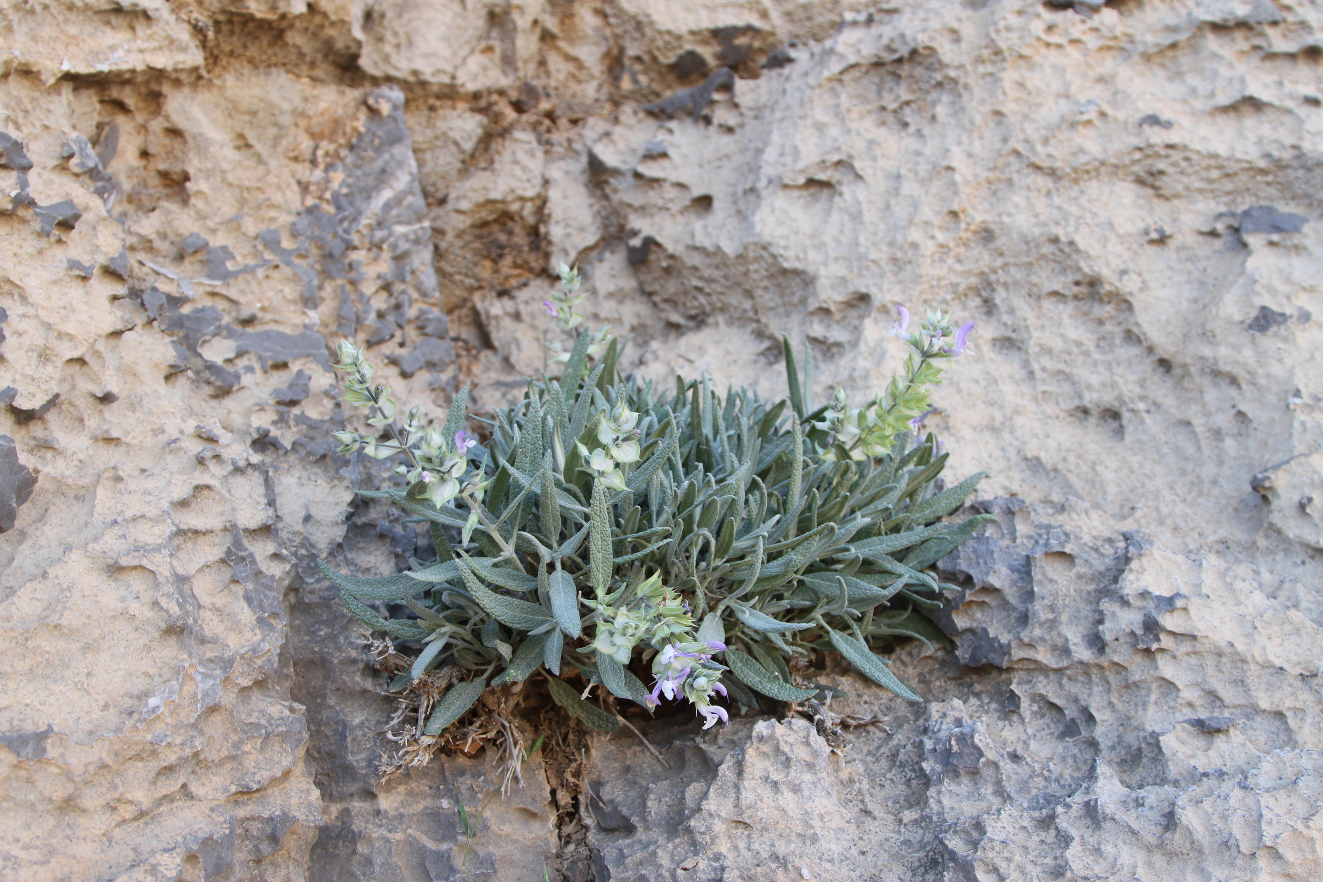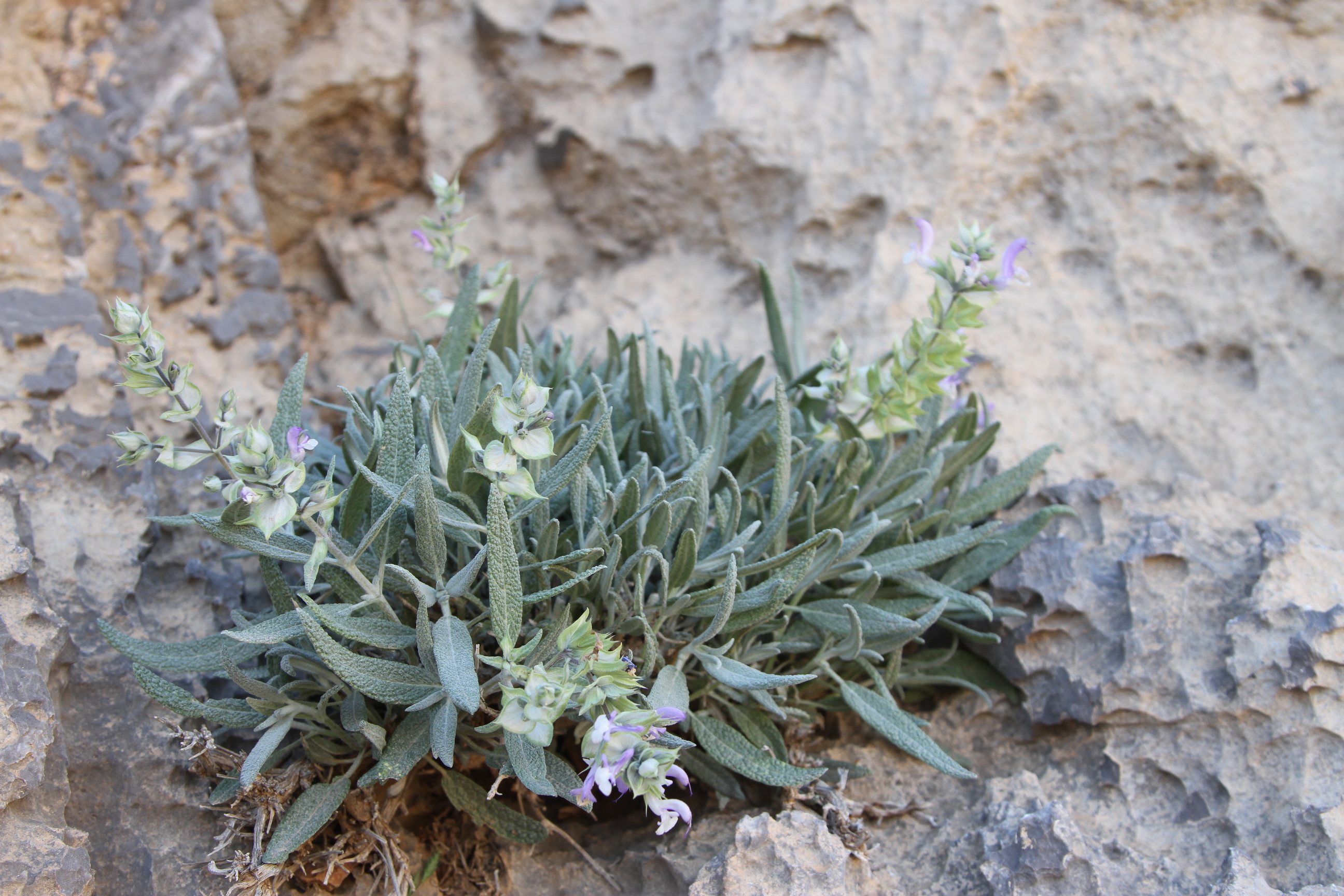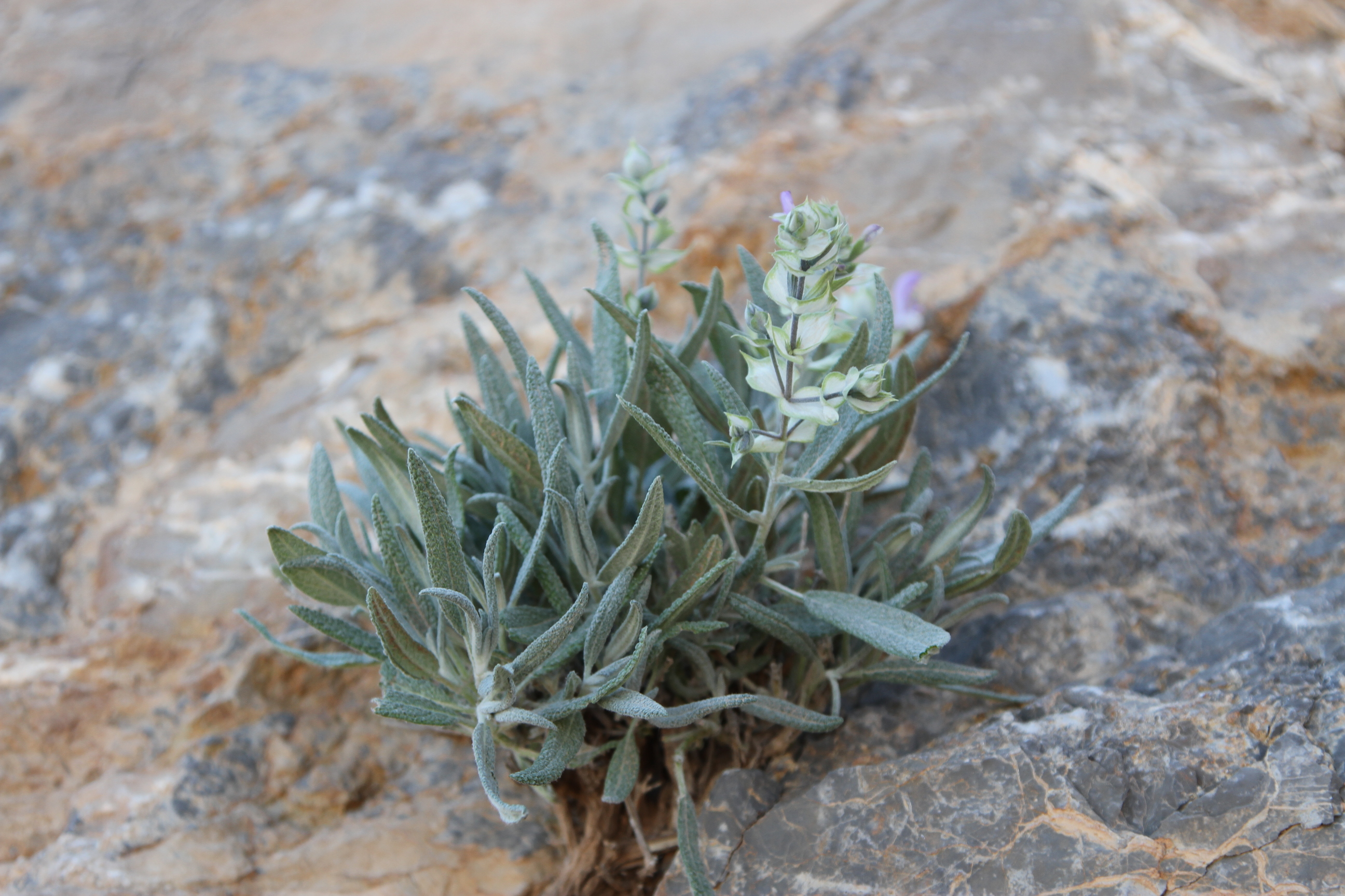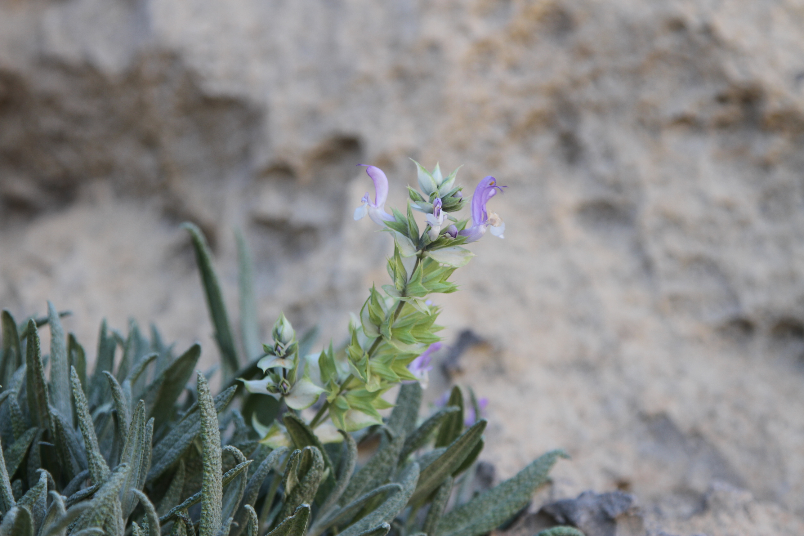 Subshrub ; up to 35 cm high , with woody basal stems , aromatic . Stems erect , quadrangular , ± branched from the base , white eglandular pilose below , densely glandular above with capitate glandular hairs and oil globules . Leaves opposite along the stem , 1 . 8-4 . 5 x 0 . 3-1 cm , grey-green , linear to linear-lanceolate , base cuneate , apex acute , margins entire , eglandular white-lanate , rugose on the upper surface ; petioles up to 4 mm . Inflorescences simple panicle , verticils 4–6-flowered ; bracts 10-12 mm , broadly ovate to suborbicular ; pedicels 1-2 mm , erect to spreading in fruit . Flowers white to violet ; calyx grey-green , tubular , 12-14 mm , elongating to ± 15 mm in fruit , 2-lipped , distinctly ribbed , glandular pilose ; upper lip with 3 acuminate teeth ; corolla white to violet , 2-lipped , 20-25 mm ; tube ± erect ; upper lip ± falcate , lower lip 3-lobed . Fruit nutlets not seen . (Ref . Flora of Oman ; vol . 3) .