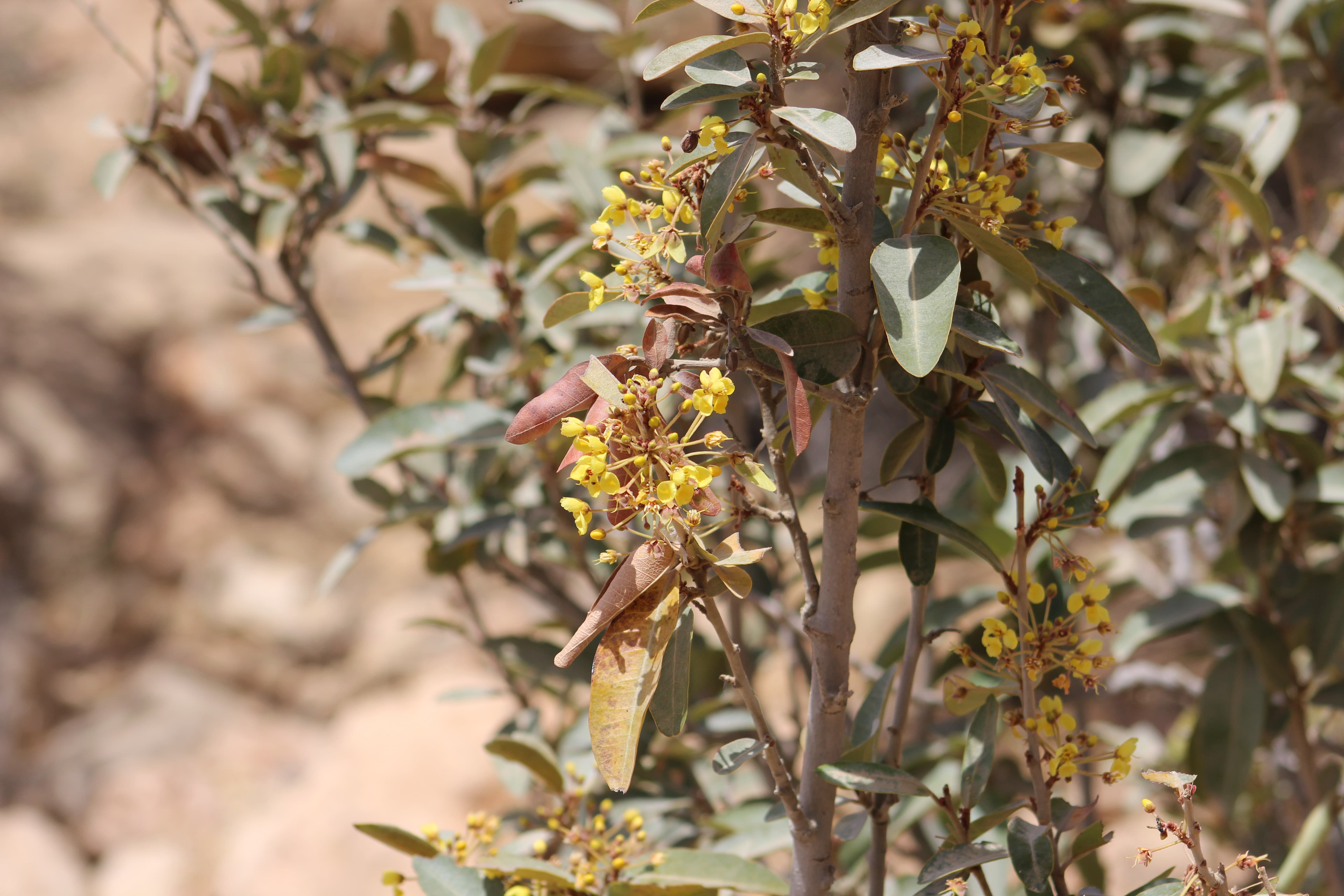 great consequence for a people so dependent on milk as their main source of food. This treatment was said to be particularly successful in goats. A mixture was made too from crushed leaves which were added to water, boiled then squeezed through very fine material. If an internal swelling was suspected, this strained liquid was drunk, and to treat an external swelling the juice was squeezed over and around it. In northern Oman the crushed leaves are added to oil which is then used as a treatment for paralysis, and also as a poultice and an embrocation to soothe and soften painful tendons and muscles". (Ref. Plants of Dhofar). In addition, Ghazanfar (2007) mentioned that: "Oil extracted from the seeds, and extracted of leaves, has been used in northern Oman in traditional medicine for chronic headaches, massaging on paralysed limbs, and for muscle and tendon pains. The extraction of oil from the small seeds is an arduous task carried in only a few villages in the western Hajar mountains. New growth and underbark has been used as a tanning agent in Dhofar". (Ref. Flora of Oman; vol.2). Further, Pickering & Patzelt (2008) stated that: "Crushed leaves are mixed with oli to reduce swellings and muscale or joint pain. Used as a yellow dye". (Ref. Field Guide to the Wild Plants of Oman; 2008). Furthermore, Patzelt (2015) mentioned that: "In Oman, the seed oil and leaf extracts are rubbed over the skin to treat painful tendons and muscles. Cosmetically, the oil is applied on the face and body to soften the skin. The leaves are used together with Al Mihtedi (Pulicaria glutinosa) as a source of yellow dye in northern Oman to dye goat wool. The yellow wool is used for carpets and camel blankets". (Ref. Photographic field guide to the plants of the Western Hajar Mountains).