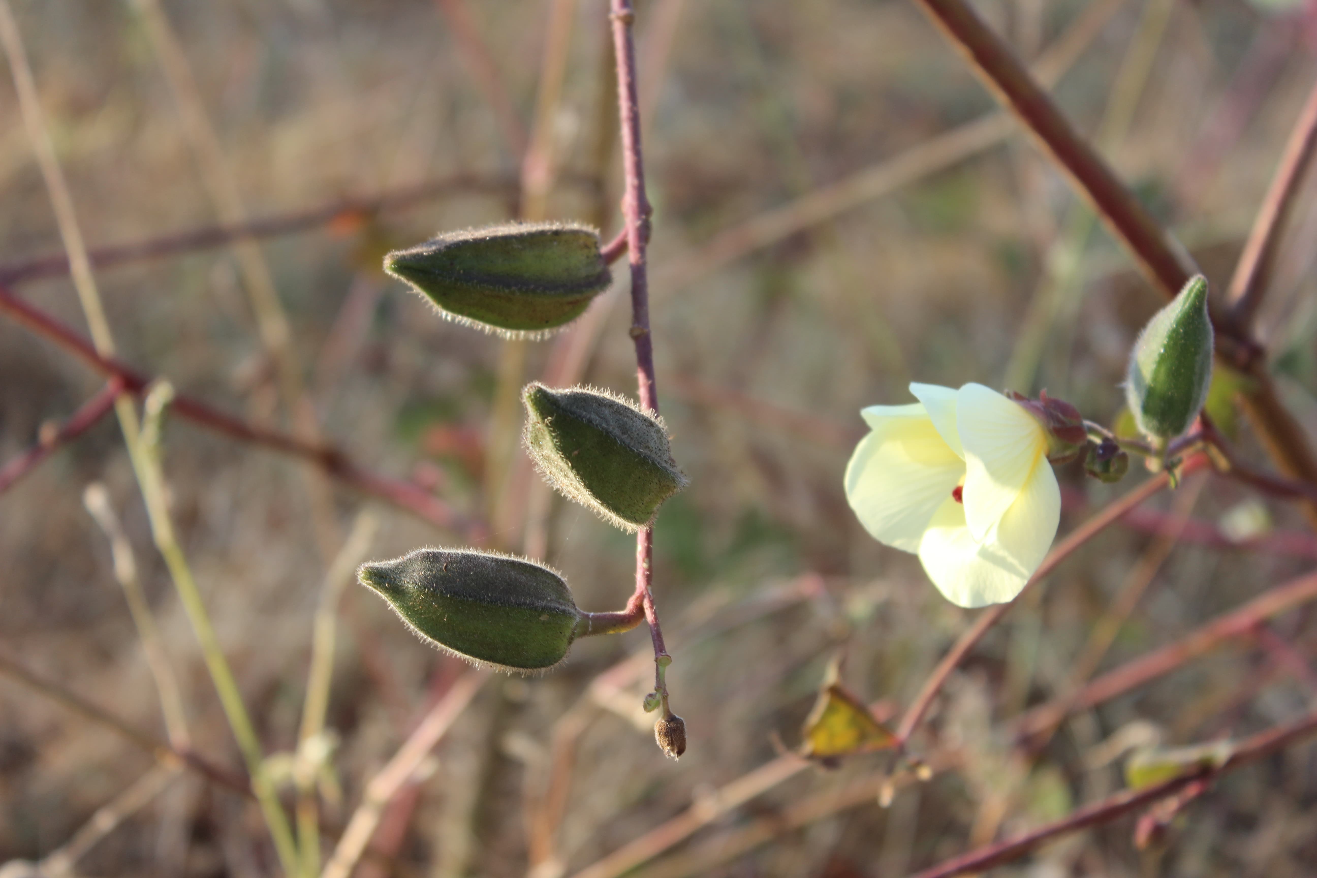 In Omani studies: Miller & Morris (1988) wrote that: "Both Abelmoschus esculentus and A. manihot grow widely in the better soils of the monsoon mountains. They produce pods that resemble the commercially grown okra or "ladies' fingers". The two species are not differentiated locally, and the fruit of both were gathered and eaten, and were very popular in the areas in which they grew. The pods were eaten raw when still tender and immature, or were cooked as a vegetable when larger and more developed. Once the fruit has ripened and becomes rather tough, the pods were opened and the seeds removed and either eaten raw or gathered to be cooked with grains. Uncooked the fruit have a delicious sweet flavour, and less of the mucilaginous matter associated with many of the commercially grown species. The leaves and stems were crushed to a pulp with water, and then rubbed to