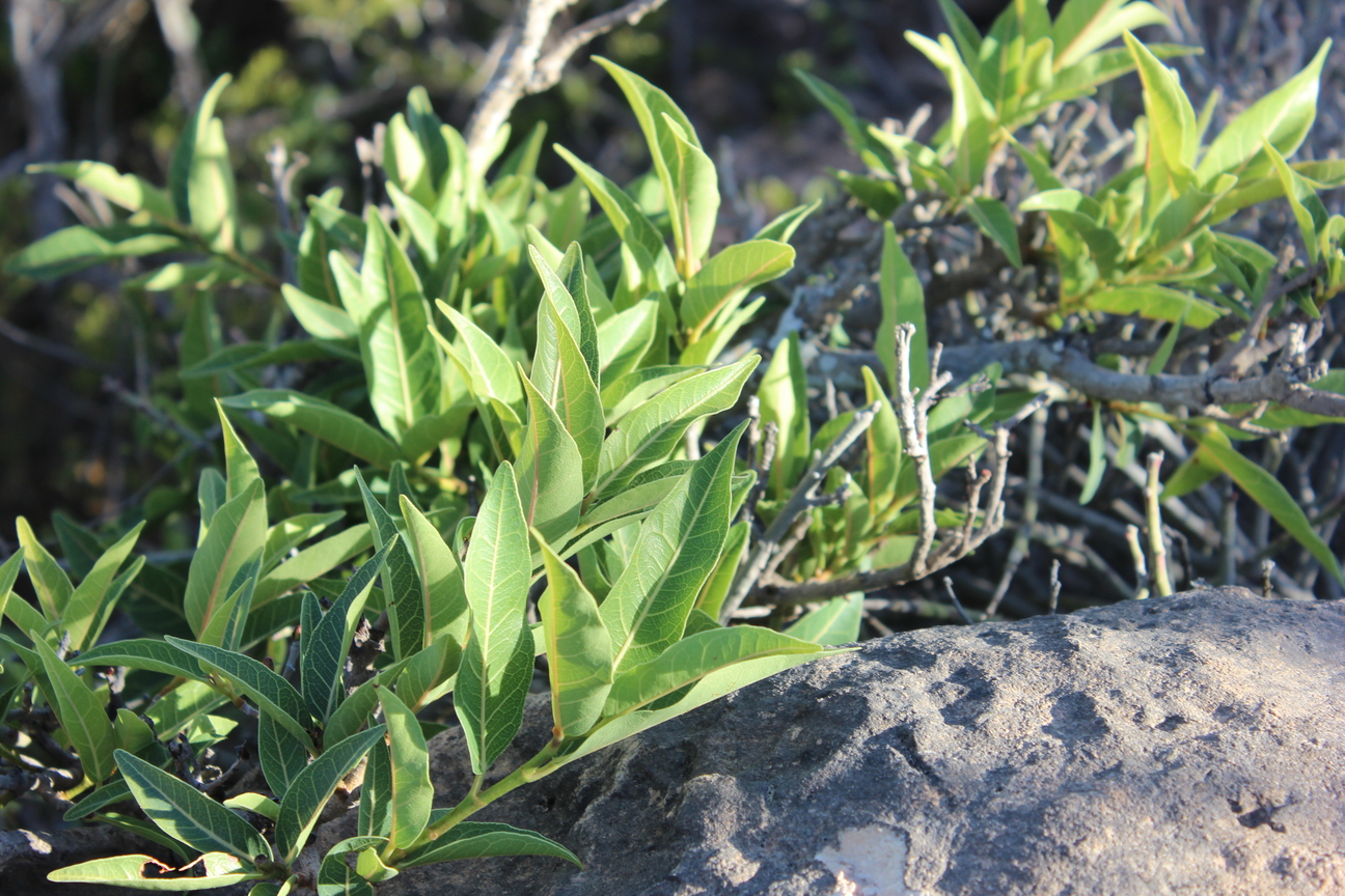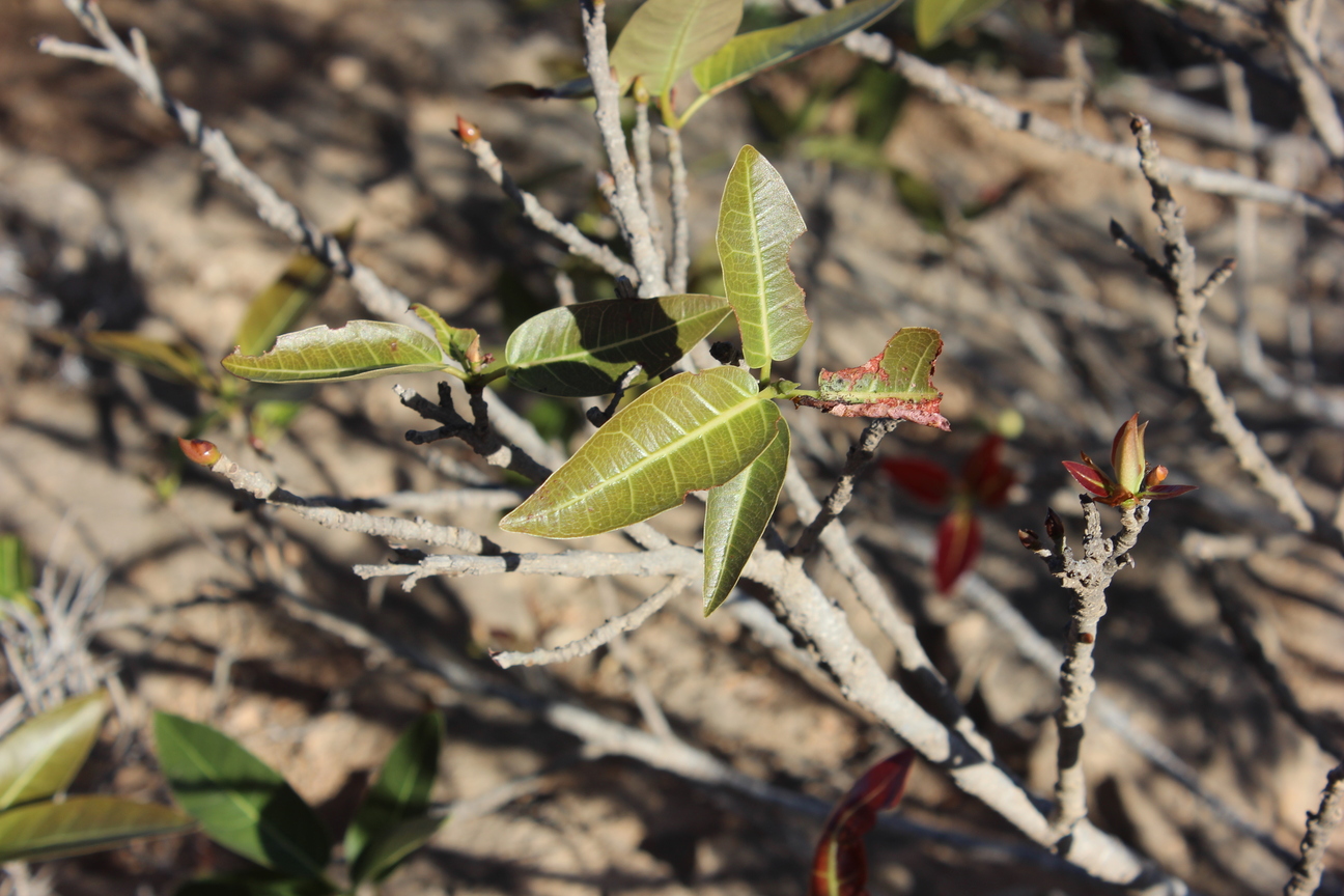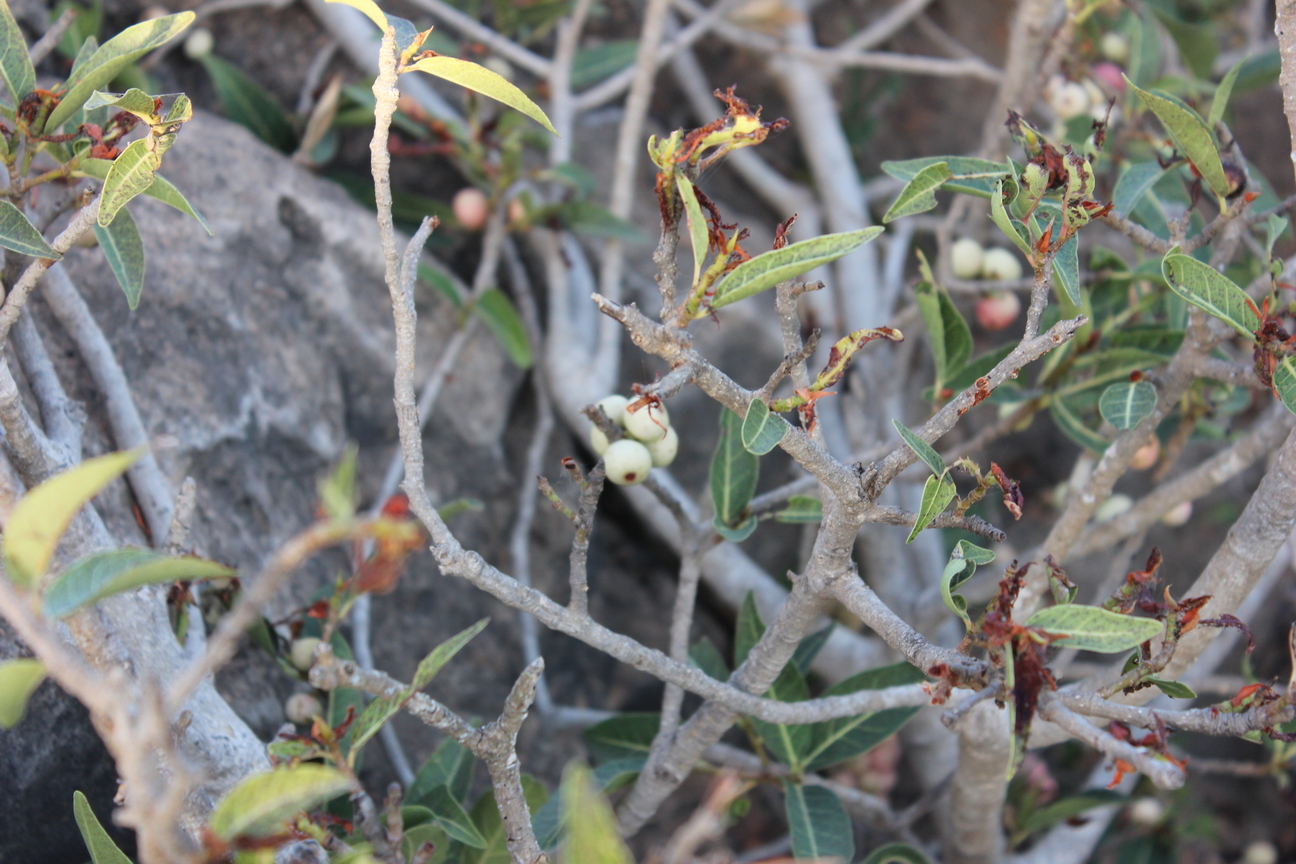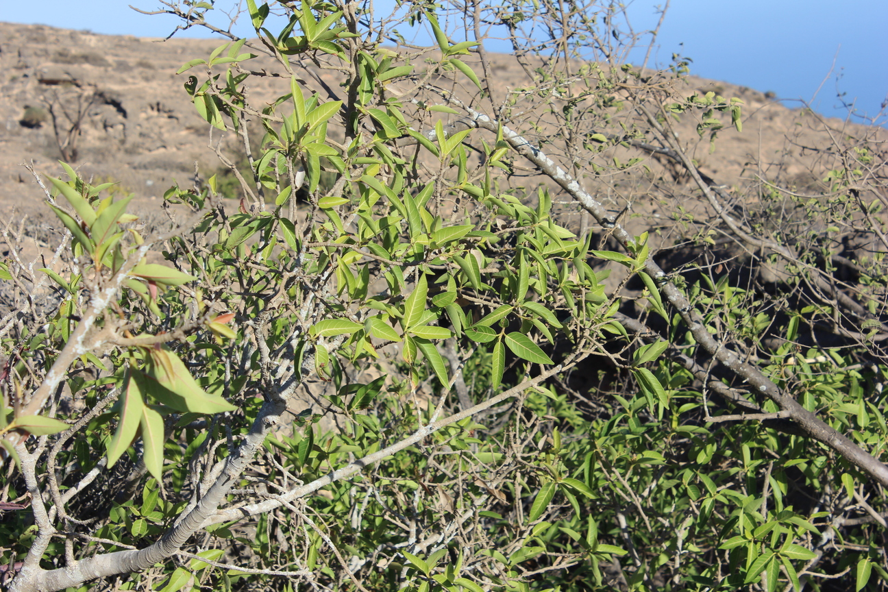 being reliable indicators of an area of good soil, as were healthy bushes of Pavetta longiflora, Olea europaea, Euclea schimperi and the herb Becium dhofarense. The latex that exudes from the immature figs and from the growing stems can be used in place of the sap of Ficus vasta in the setting of fractures and dislocations, but that of F. vasta was more copious and was also considered to be more effective, so was always preferred where there was a choice. The milky juice of both figs was regarded as being a good remedy for severe swellings or infections which were slow to come to head [J: hodo as opposed to J: hilet, any swelling]. The juice was painted around and over the swollen part to draw out the pus. This fig 'milk' was regarded by many as being more efficacious for this than applications of latex from Euphorbia smithii or E. larica. The greenery was an important fodder in periods of drought, and leaves of this fig as well as of F. vasta and F. sycomorus were collected with foliage from Rhus somalense, Azima tetracantha, Pavetta longiflora, Anogeissus dhofarica, Periploca aphylla, and Capparis cartilaginea, to be taken back to feed the settlement livestock". (Ref. Plants of Dhofar).