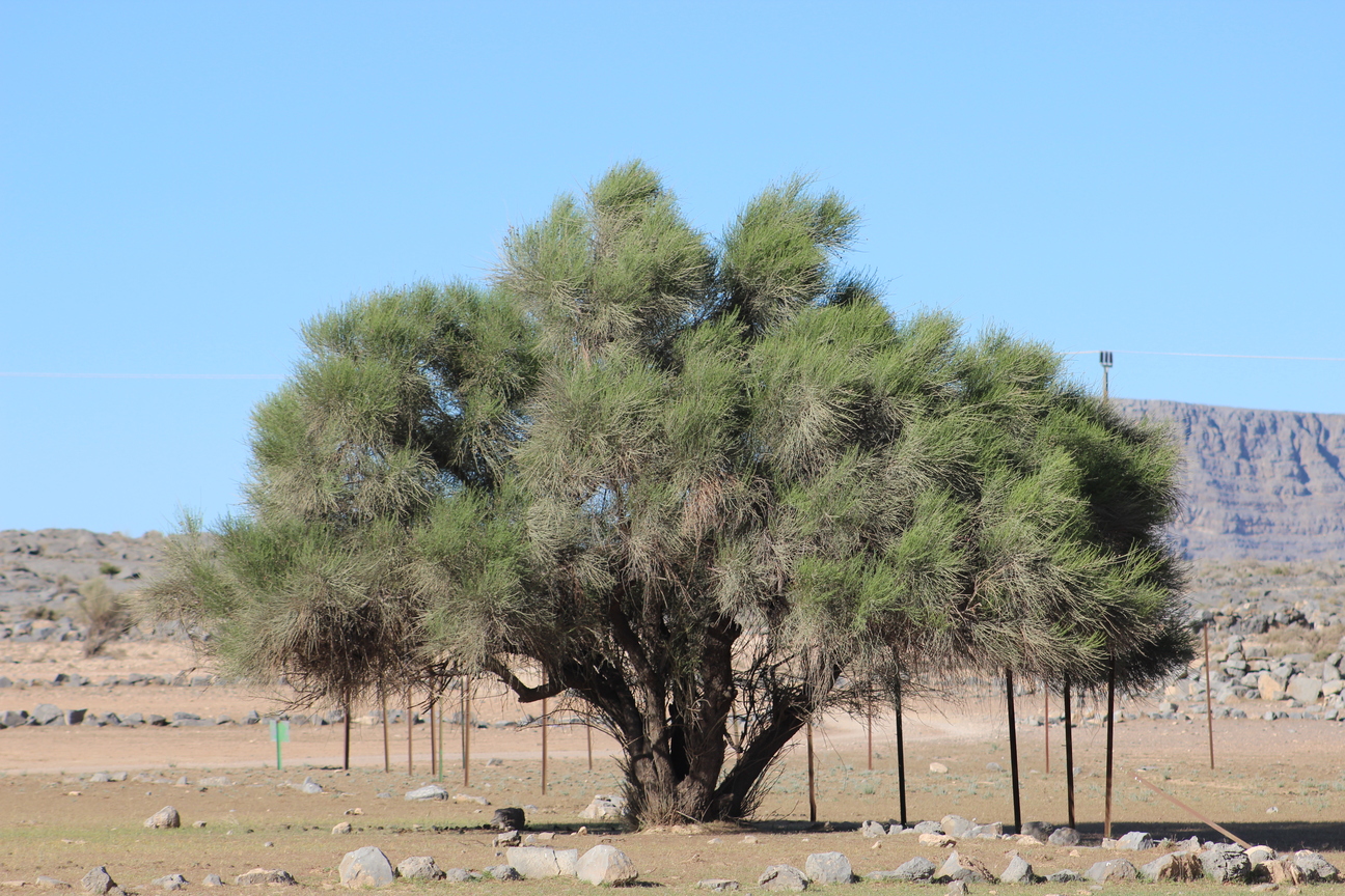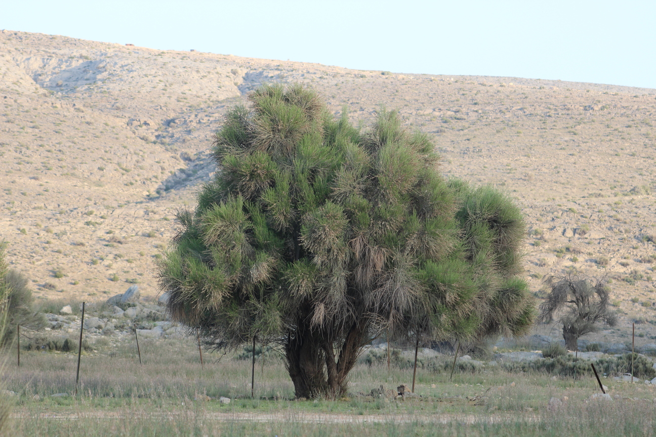 In the Eastern Hajar, the fruit is eaten either raw or roasted with ghee. It is used to treat diabetes. (Ref. Oman Botanic Garden). In Omani studies: Ghazanfar (2007) wrote that: "In Musandam the tree is sometimes planted as a windbreak at the edges of small farms on the mountains. The wood is used to make the handle of the traditional tribal axe (Arabic: Jirz) popular in Musandam. The seed kernel is usually very bitter and inedible (recorded to be edible by Jongbloed, p. 482 (2003)". (Ref. Flora of Oman, vol. 2).